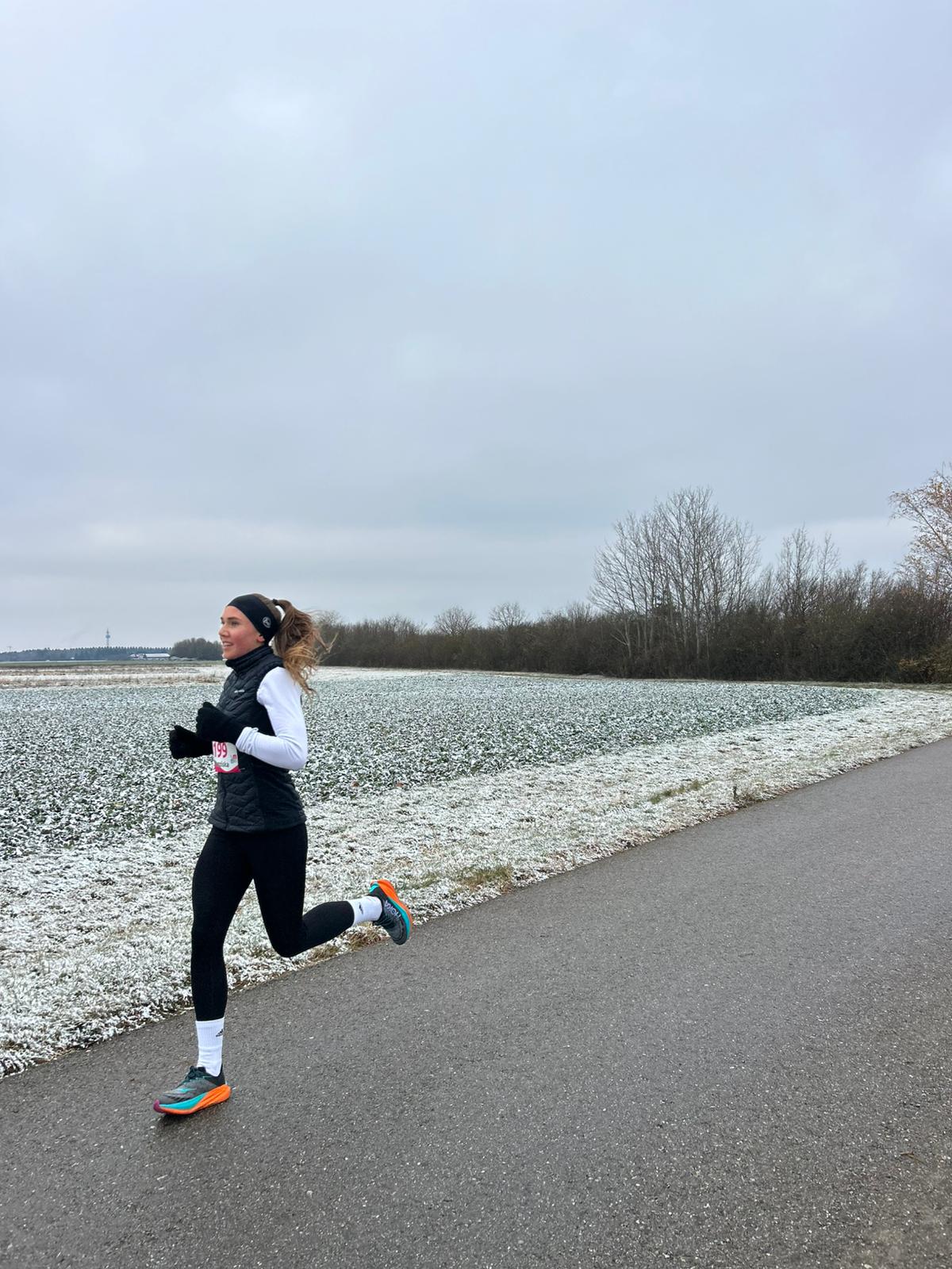 Auf der offiziell vermessenen und DLV-genehmigten 10-km-Strecke zeigte Franziska eine eindrucksvolle Leistung. In 40:29 Minuten sicherte sie sich den 3. Platz in der Frauen-Gesamtwertung. Als kleine Anerkennung gab es passend zur Jahreszeit einen Lindt-Schoko-Adventskalender.